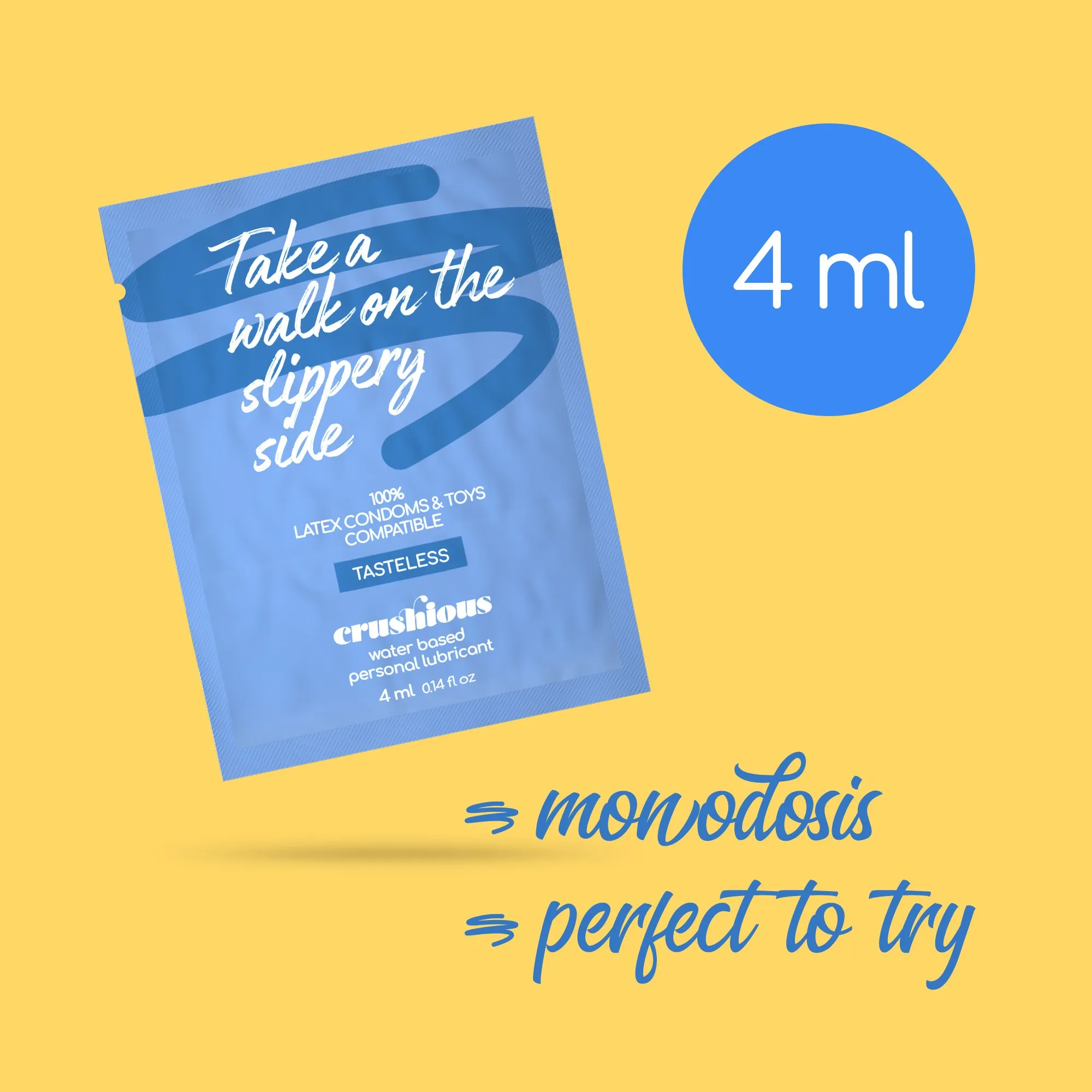 As Saqueta Lubrificante à Base de água da Crushious estão projetados para a sua vida agitada, e são perfeitos para serem transportados de forma segura.